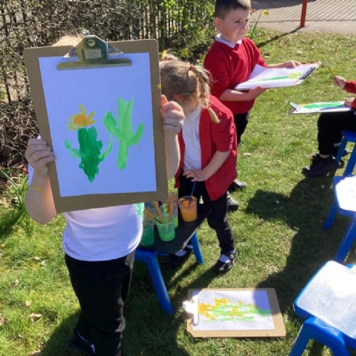 At Cherry Tree Hill, we will enable children to communicate what they see, feel and think. Children can experiment with their ideas, their use of colour, texture, form, pattern and different materials and processes. We ensure that there is ample opportunity for children to develop in six areas of art: drawing, painting, printmaking, sculpture, textiles and collage. We encourage children’s curiosity and enjoyment by teaching skills discreetly whilst also using art as a way to teach cross curricular subjects.